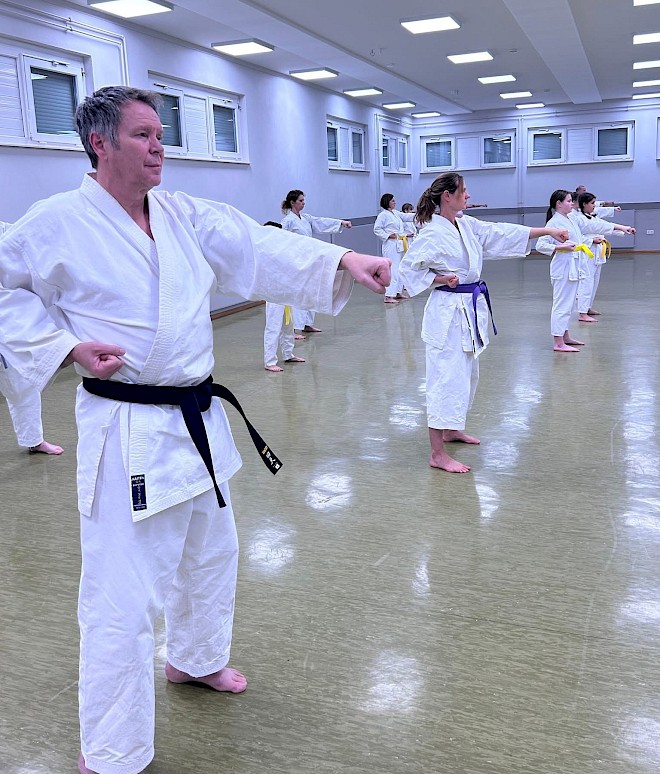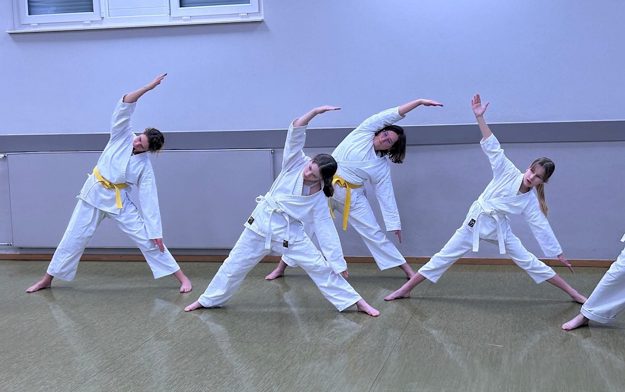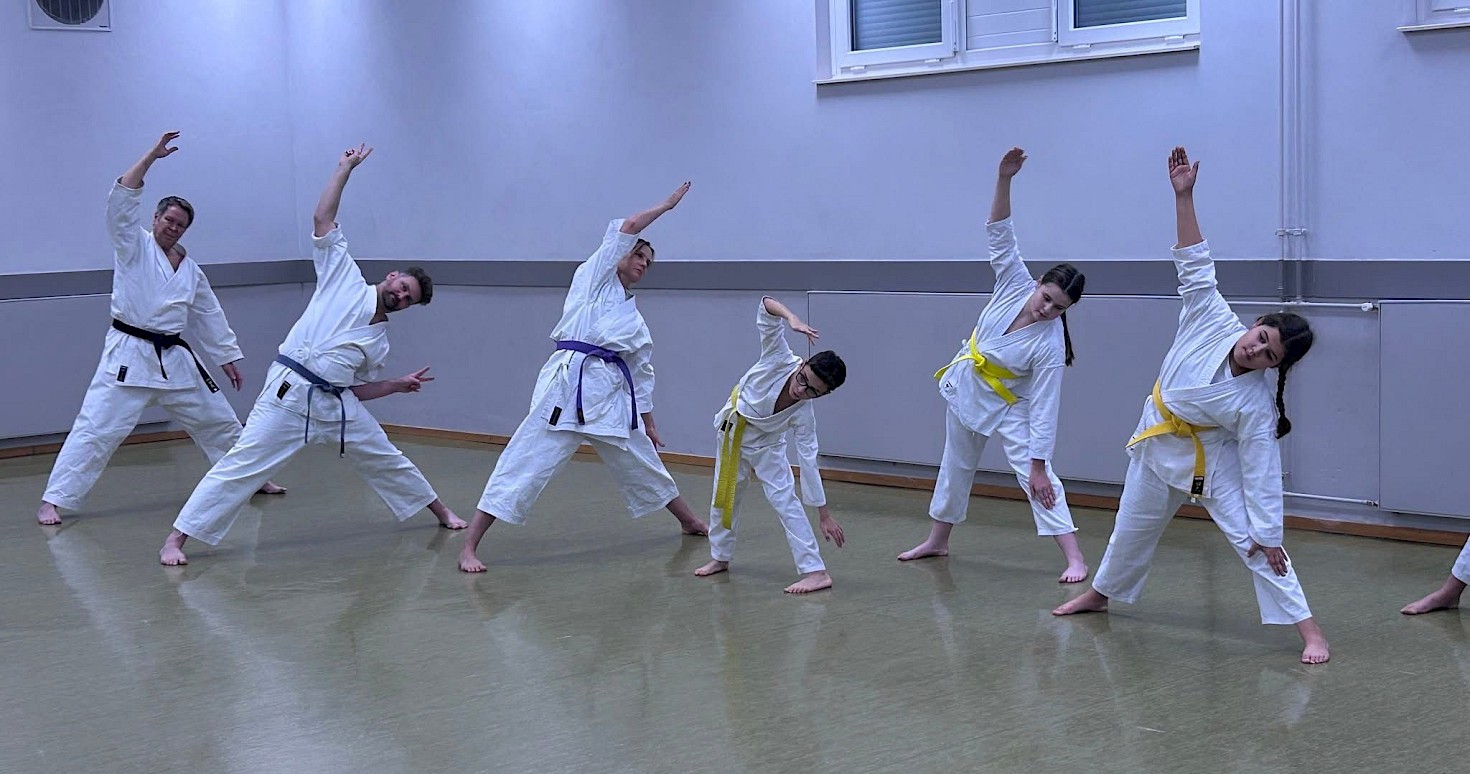 Später liefen wir noch ein paar Mal die Kata Heian Shodan (平安初段), um zusammen als Gruppe – egal, welche Gürtelfarbe – das Trainingsjahr 2026 zu beenden.