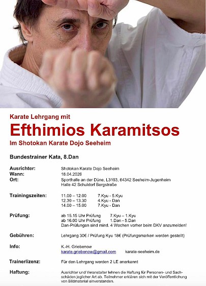 Lehrgang mit Bundestrainer Efthimios Karamitsos (8.Dan) am 18.04.2026 in Seeheim-Jugenheim